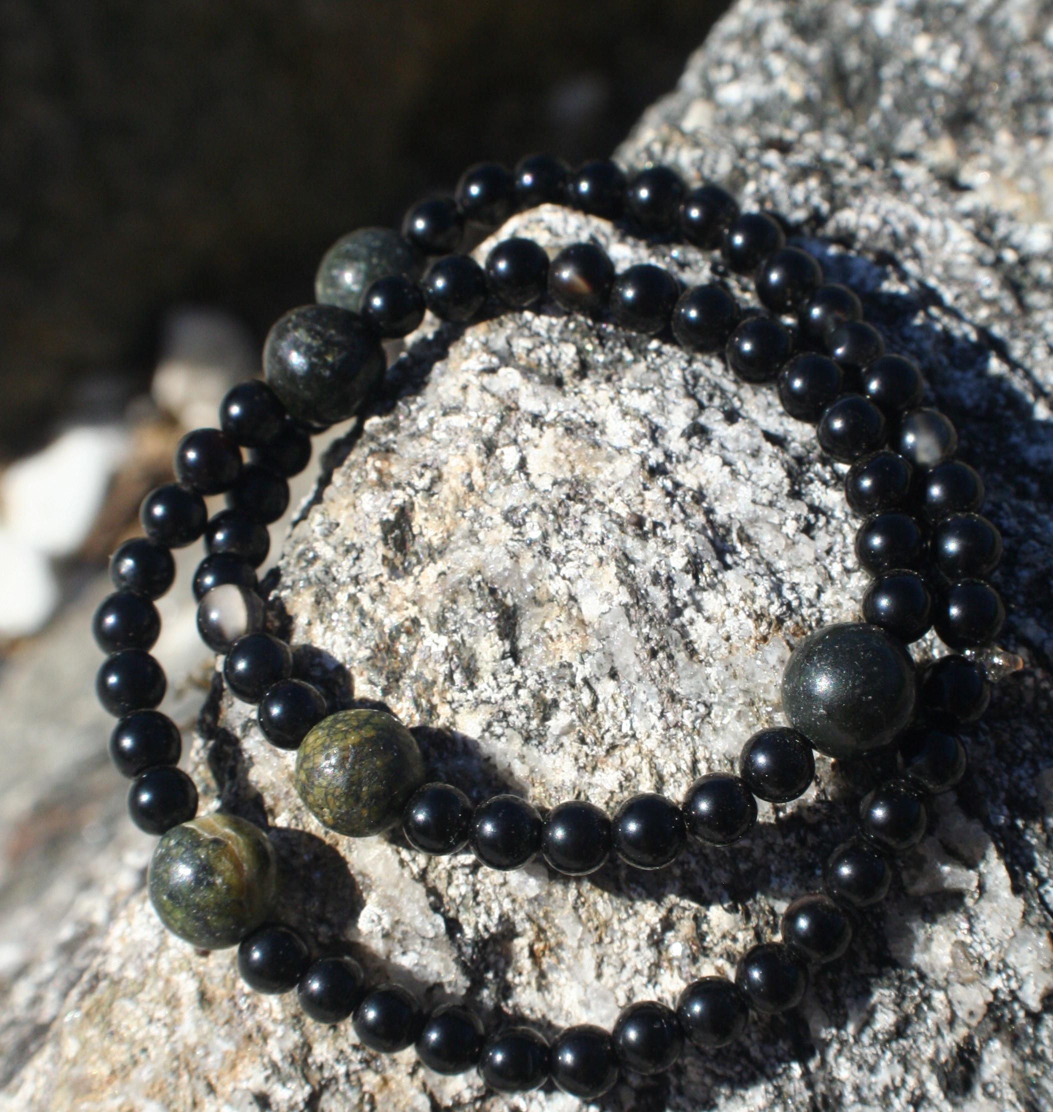 Oringial_Zen is the OG of Future For Freedom! The double wrap with black Agate and Goldstone was the very bracelet that got me believing I could succeed creating & selling jewelry. I did not know at the time, but the crystals help clear and open the Base, sacral, and heart chakras. Black Agate is a grounding stone that and highlights natural talents and the will to live. It has a few different physical health benefits. Goldstone brings ambition (as it did for me, certainly) and luck - even prosperity. The other bracelet in this set of 2 is with black Agate and Serpentine. Serpentine is there to help release tension. It regulates a healthy flow of energy, creatively and brings inner peace. It can be helpful when you are setting boundaries as well. This bracelet set truly inspired me....and I hope you enjoy it!!!