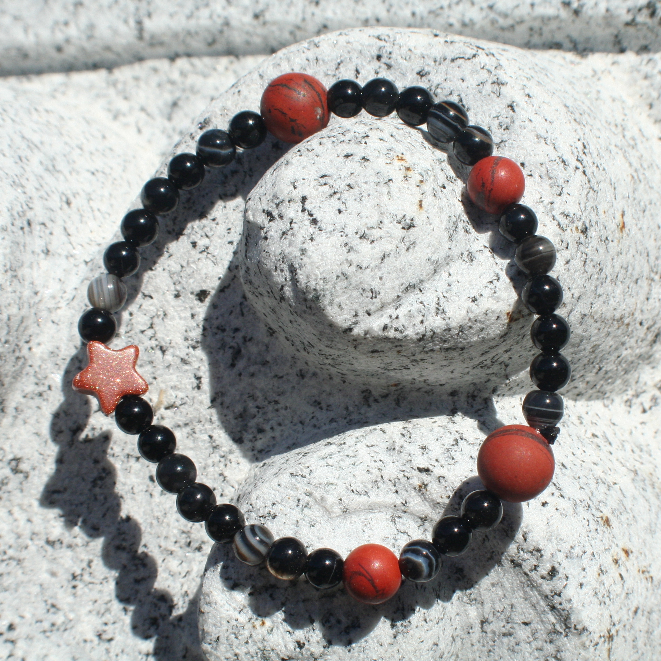 Activate Fate [black & Botswana Agate, red Jasper, & Goldstone (star)]