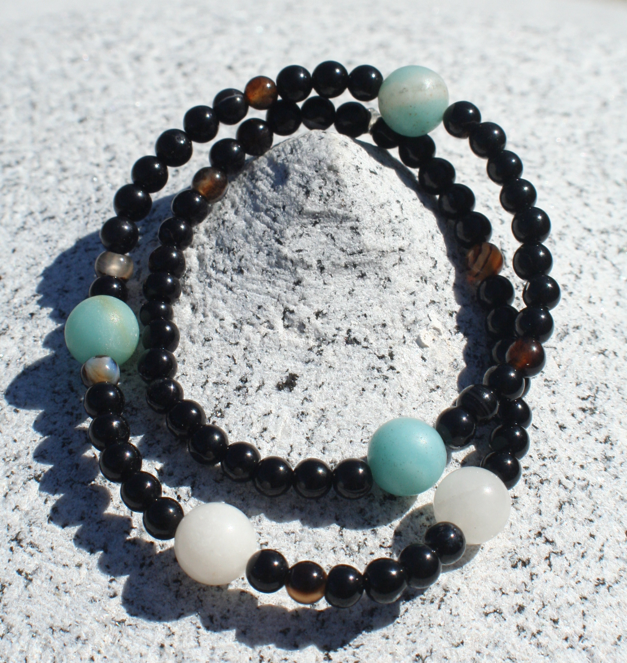 Picture The Potential [black Agate, Amazonite, & Jade - double wrap]