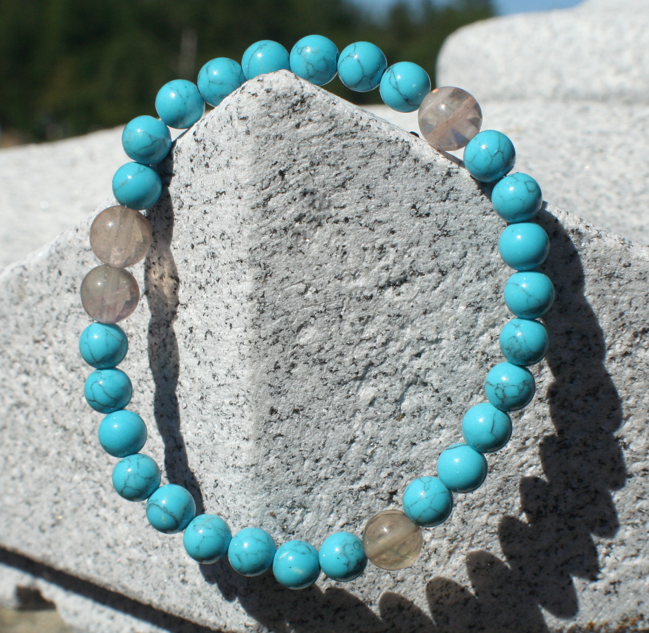 Turquoise- blue, green, or blue/green masses (rarely in the form of crystals) created in the oxidation zone of copper deposits when water containing phosphate seep, or in rocks that contain aluminum and phosphate through copper solutions, discovered in Turkey by Crusaders. Turquoise was used for protection and also back magic in history and is said to change color to warn of oncoming danger when carried on one’s person. Even today it is known for protection in safe travels, near or far. Normally it should be worn, carried, or held on the solar plexus or over the thymus gland for best results, for 20 minutes a day at least. Turquoise helps one see that faith is theirs, the luck their own creation. It can the identify problems one brings upon themselves, and bring awareness of why things happen. It promotes self-expression, communication, wisdom, and courage, aiding in public speaking and writing. Turquoise is also for compassion, romance, love, and friendship - helps one see the beauty in every little thing. Turquoise is balancing for the emotions, bringing peace of mind and yin/yang balance, often dissolving a suspicious or negative mind, and offering mental and spiritual clarity needed to forge one’s own path. Turquoise refreshes the tired and exhausted, balances extreme mood fluctuations, and protects one from sensitivity to others, while dissolving apathy and even self-pity. Turquoise helps enhance intuition, foresight, liveliness, and readiness to act. It is useful to aid in meditation, grounding peak experiences, astral travel, spirit contact, pretty much all psychic abilities, and spirituality in general. Physical aspects- Turquoise is a multi-purpose healer, helps absorption of nutrients, neutralizes acidity in the body, and can alleviate gout, stomach problems and viral infections. It is good for the lungs, throat, muscles, and circulation. Tuquoise is helpful for rheumatism, muscle strength, relief from pain or cramps, backache, general malise, arthritis, skeletal pain, whiplash, air sickness, and certainly has anti-inflammatory properties. Turquoise eases breathing, whether it be hindered by allergies, asthma, bronchitis, or flu. It alleviates the harmful effects of radition. Turquoise is detoxifying, increases growth, brain activity, and sensory perception, and has the ability to regenerate tissue in the body and aid post-operative recovery. Turquoise is also known to help with cataracts and wounds, wind pains, weight gain, and when drank as an elixer, stress-related skin disorders. Turquoise also aids in the creation of warmth for the body. Astrological- Scorpio, Sagittarius & Pisces/// chakra orientation: throat