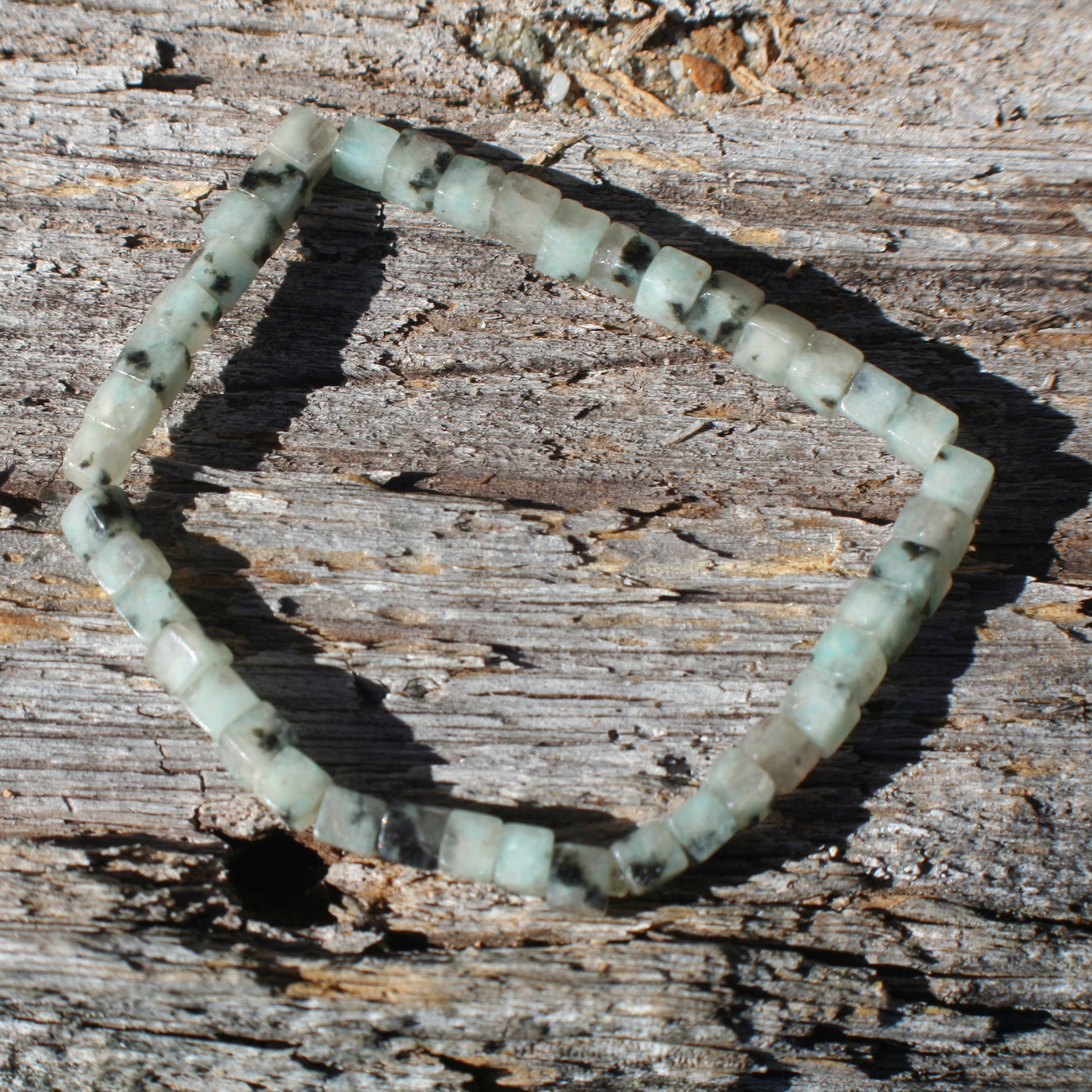 This bracelet, thanks to Kiwi Sesame Jasper, is just the accessory for anyone trying to correct compulsive behavior. Whether you are taking on changes by yourself, or with counseling, wearing these crystals can help you find and keep tranquility and a positive attitude. Kiwi Sesame Jasper may also help you maintain fairness in both giving and receiving circumstances --it is after all, important to keep an ethical Code Of Honor in this life.