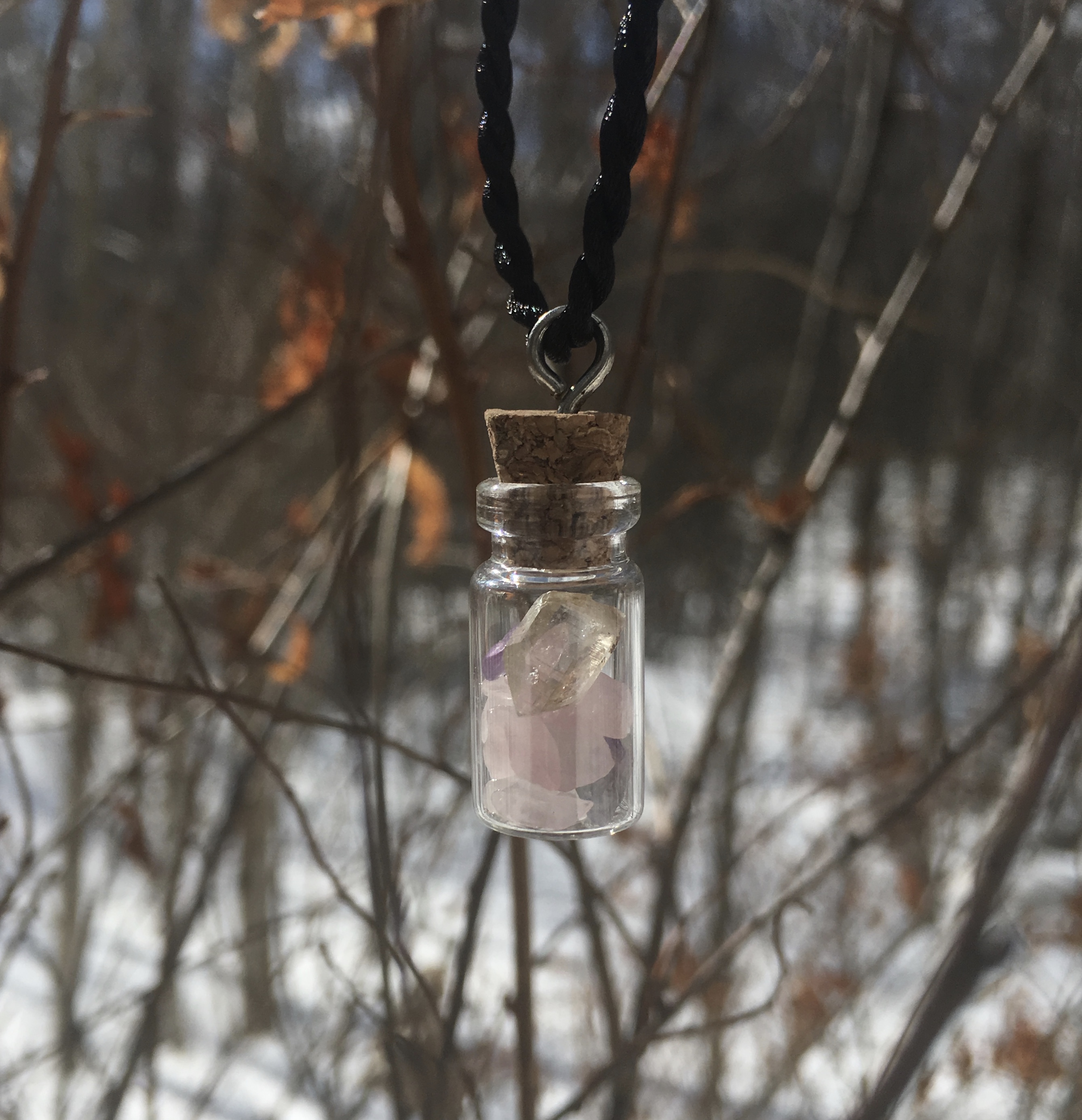Rose Quartz, Amethyst, & clear Quartz Corked Vial Necklace