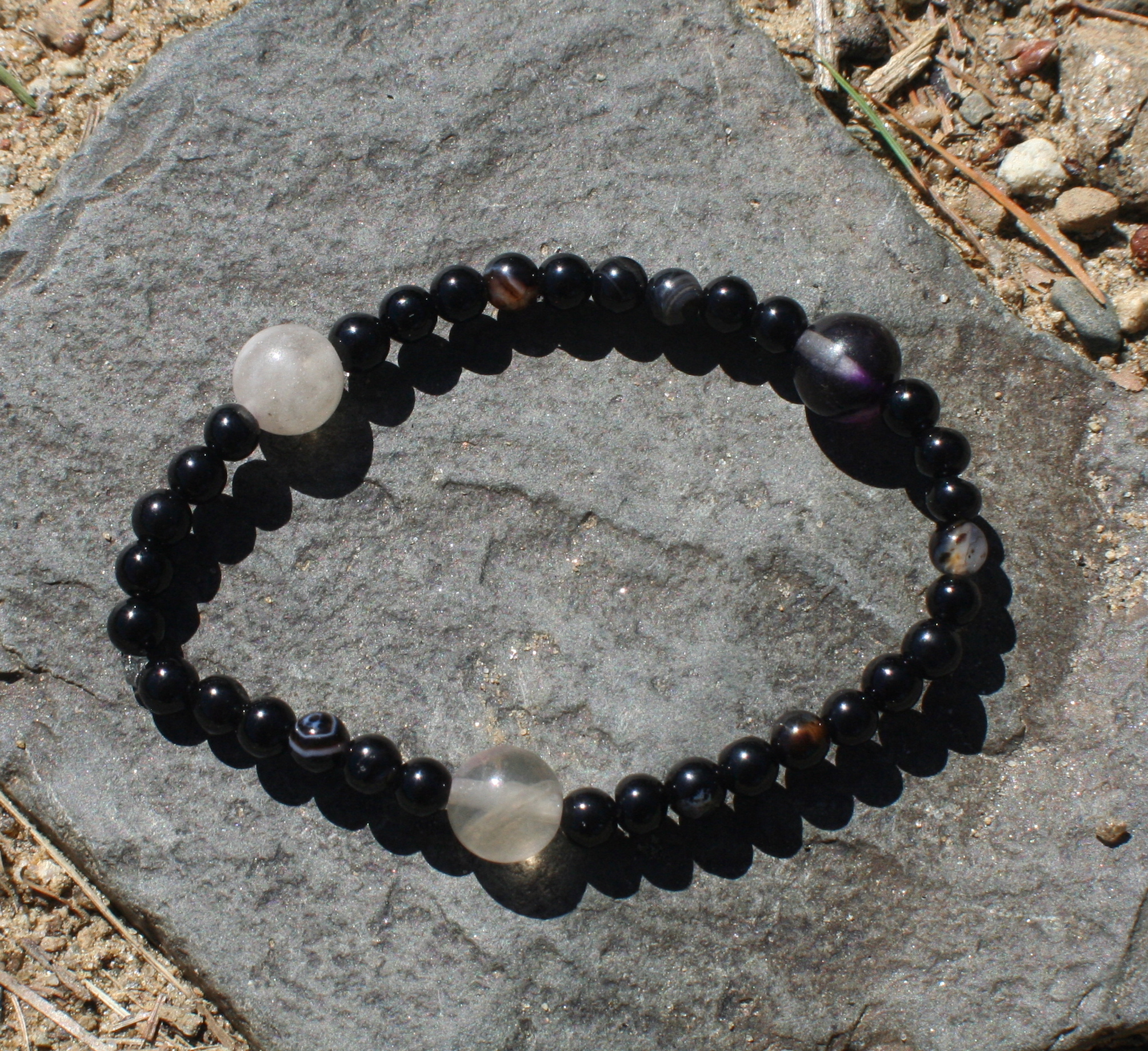 (black) Agate- there are many subcategories of agate depending on the nature of the formation (post-volcanic vs. sedimentary) and combination of other minerals and substances, and whether or not it fills a void completely or not (amygdule vs. geode). Variety of chalcedony/quartz. Protection stone as well as charm for good luck (pregnancy power) in India, Nepal, Tibet, also used for amulets and ‘eagle stone’ water glasses, said to relieve and even heal fear of pain, and giving the owner the favor of God. Black agate promotes faithfulness in relationships and brings inner strength and grounding. Good for seeing reality, maintaining focus, avoiding distractions. Agate dissolves internal tensions, tying lessons to advancing in levels of maturity, growth, and spiritualization. Highlights the will to live and survival instinct while strengthens logic and rational thought. Brings spiritual awareness into action. Promotes natural talents, helps in channeling and strengthening emotional energy and security. Physical elements- good for health of lymphatic system, colon, pancreas, and circulation; works with organs built up of different layers of skin and tissue. Helps with nausea, indigestion, gastroenteritis, stomach ulcers, bladder/intestinal inflammation, aromach cramps, and IBS. Involving the uterus as childbirth protects against disease and encourages normal shrinkage after delivery and is known as pregnancy stone for both mother and child. Good for sight and also varicose veins by strengthening blood vessels. During or before an “organ peak” the specific mineral of agate should be worn directly on the respective organ for emotional/spiritual optimization. During meditation, aids in self-diagnosis. Strengths the aura. Astrological- Capricorn, maybe Gemini-base chakra ——- stabilizes the aura by elimination or transformation of negative energies.